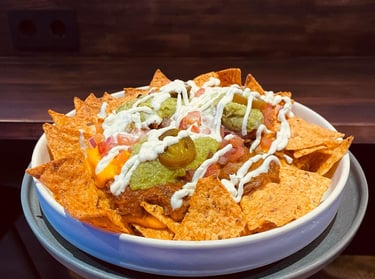 Crujientes totopos artesanales cubiertos con queso fundido, guacamole fresco, pico de gallo casero y un toque de crema agria. Perfectos para compartir… o no.